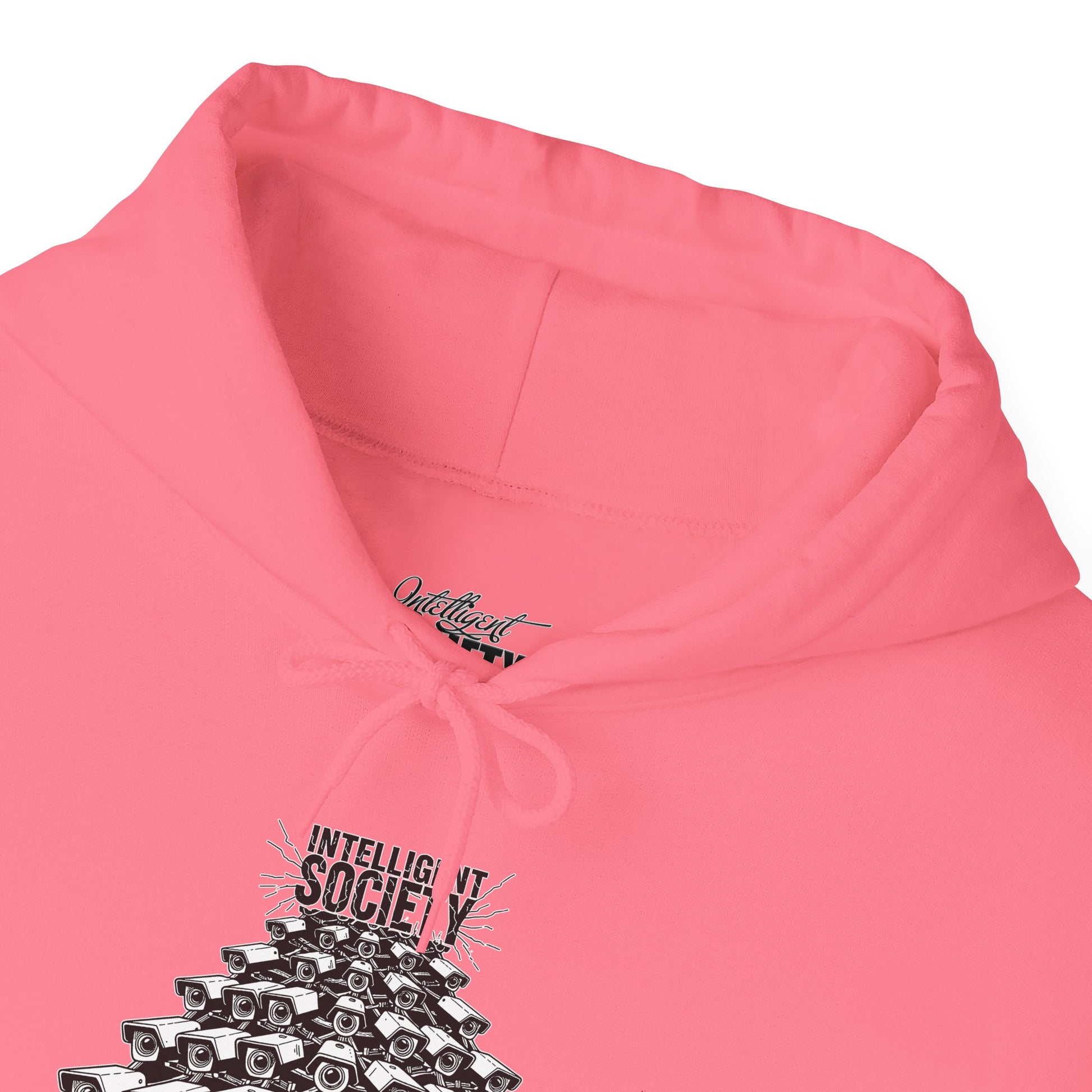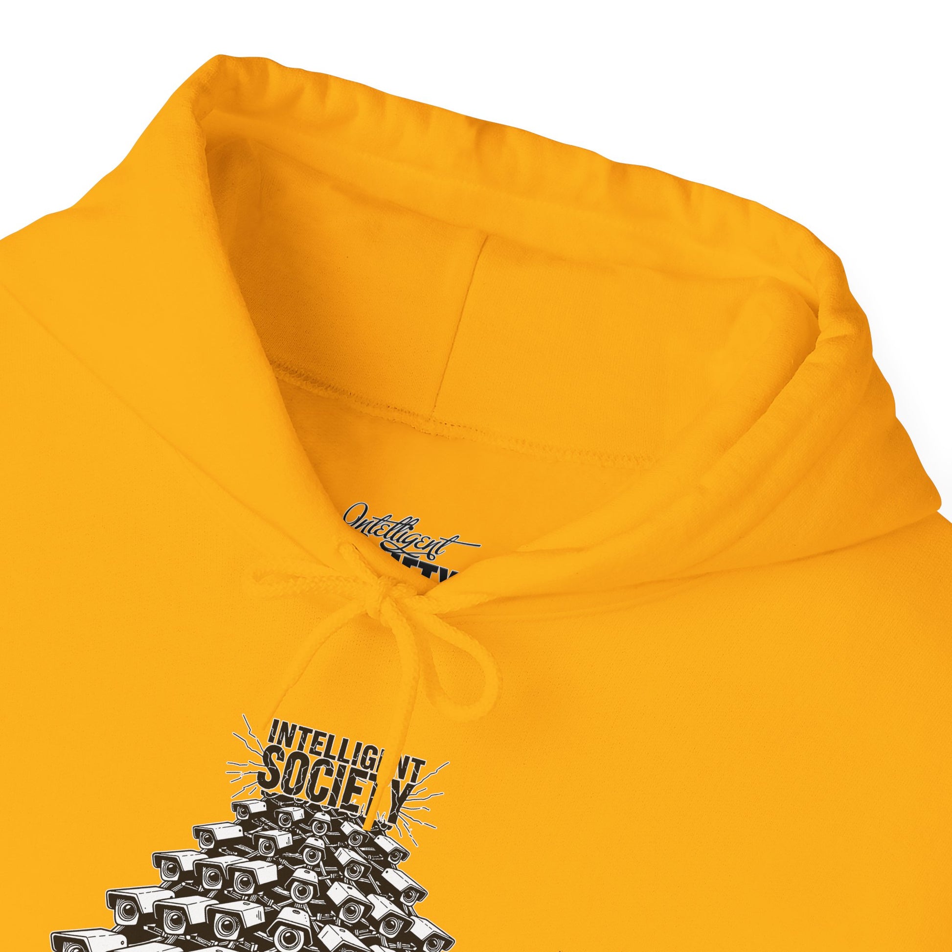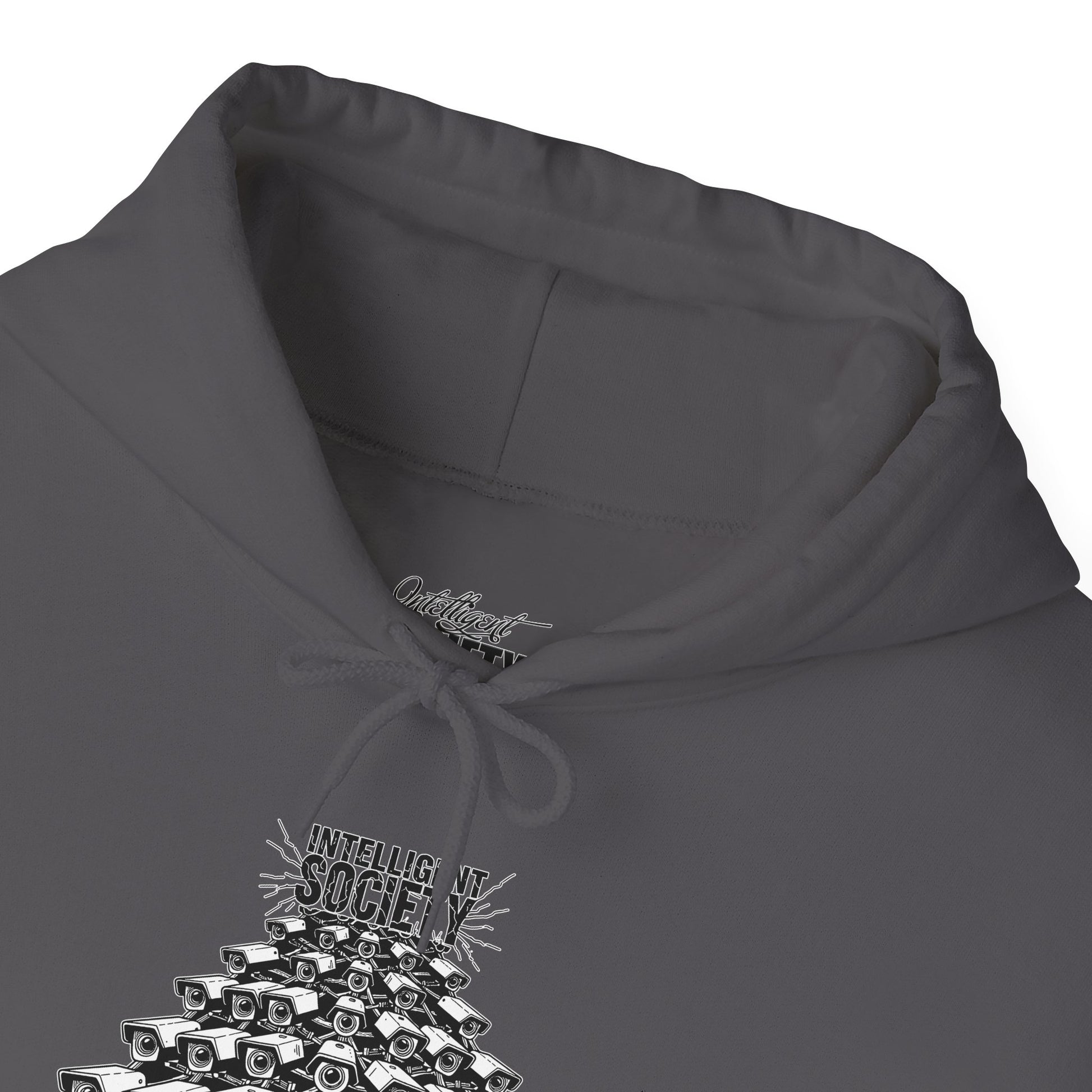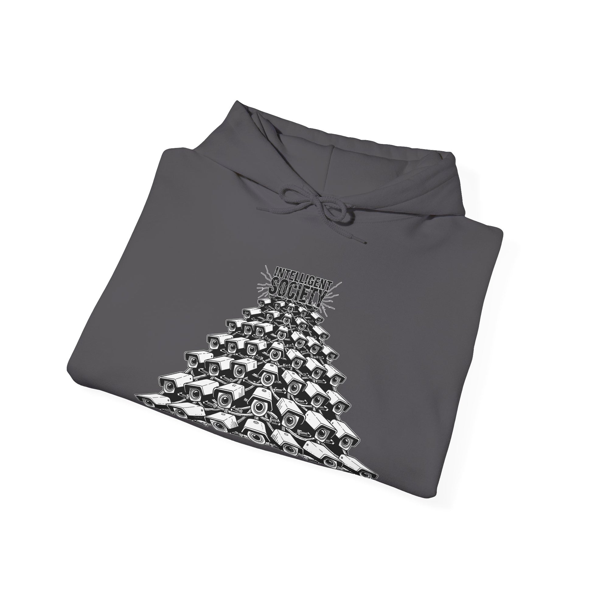 A bold Intelligent Society design featuring a pyramid of surveillance cameras, all converging upward toward the words “Intelligent Society.” This artwork symbolizes modern-day overreach, mass observation, and the growing tension between control and freedom. Clean monochrome linework and striking composition make this shirt a strong statement piece for those who value awareness, individuality, and truth.