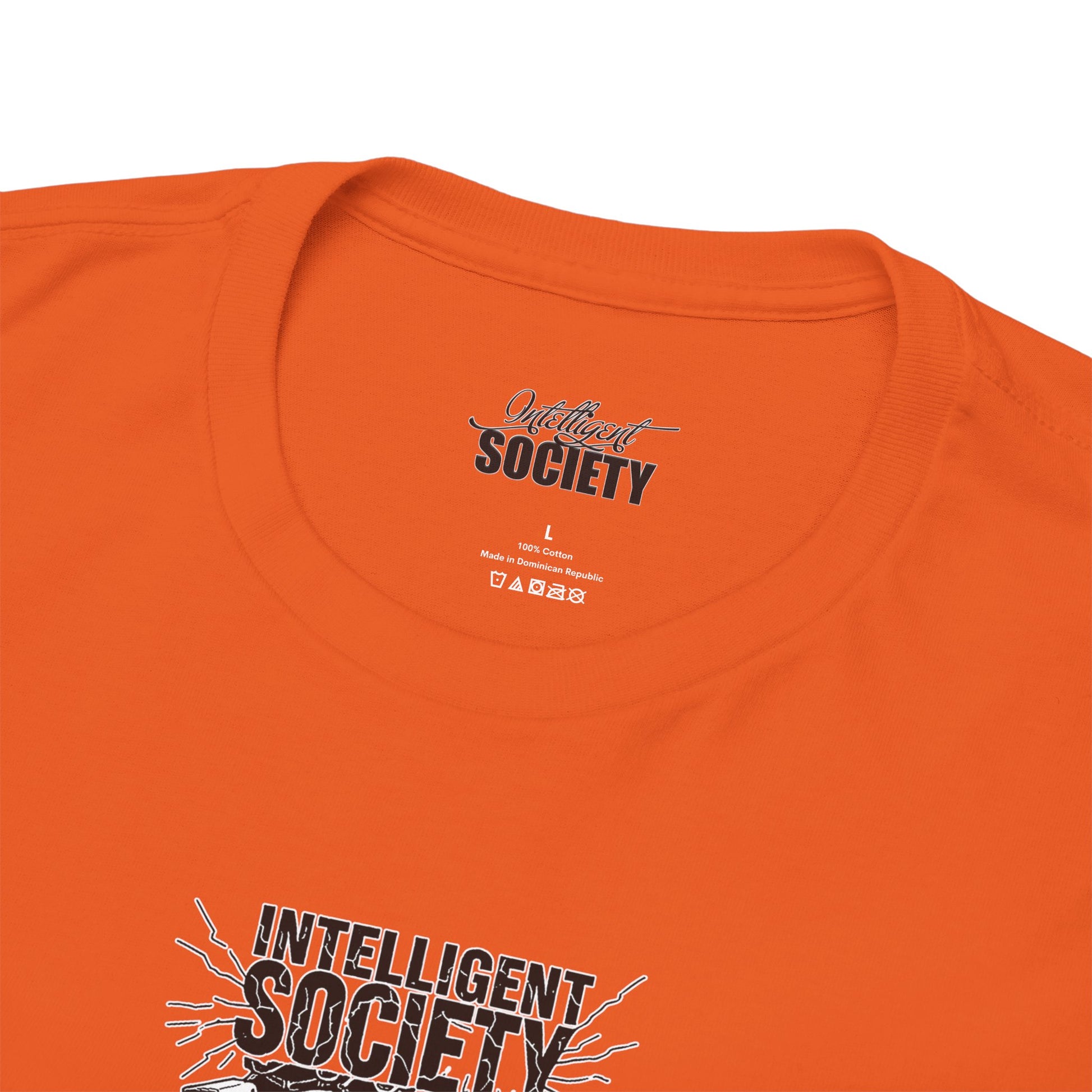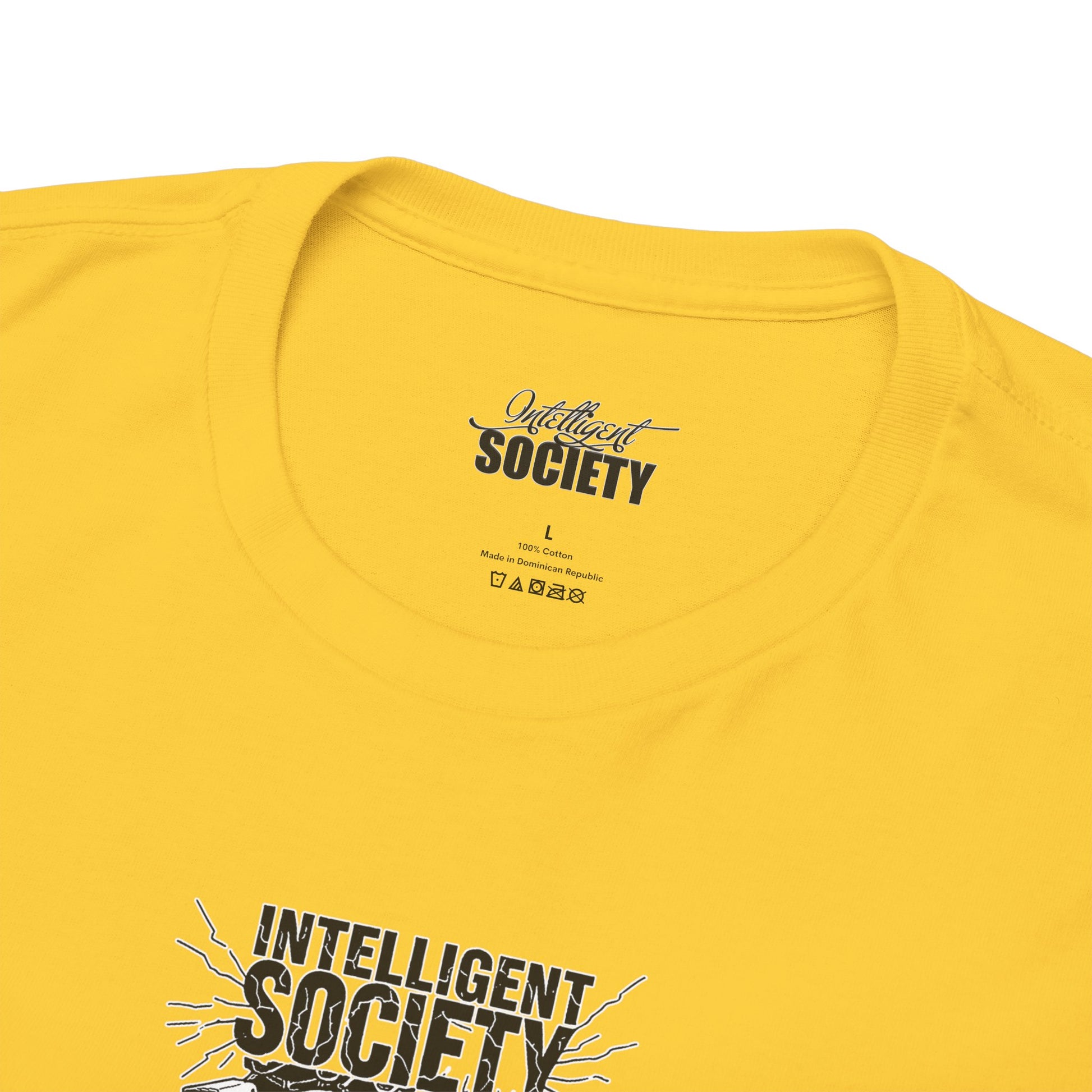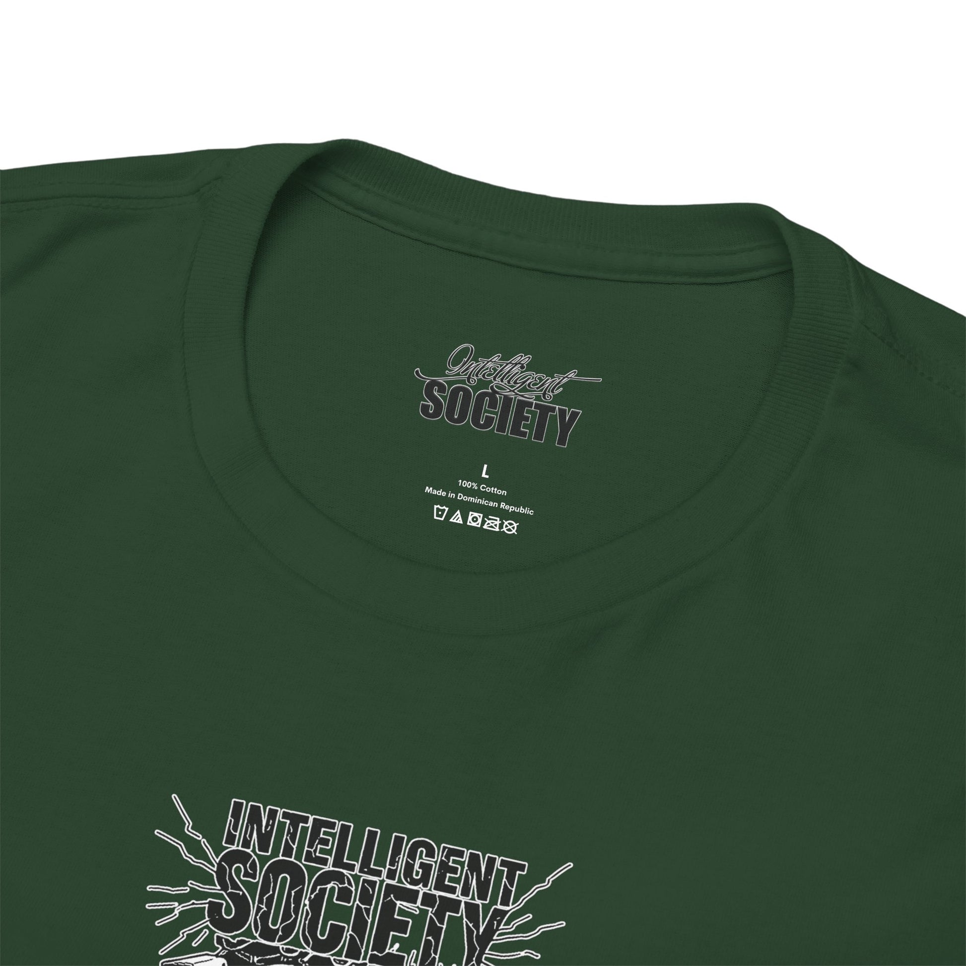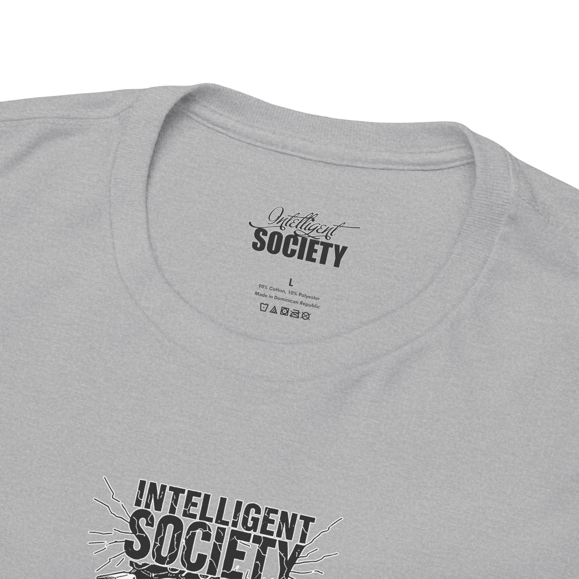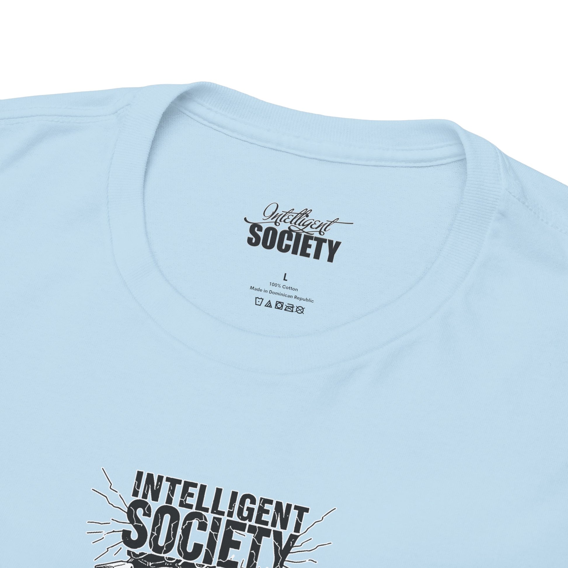 A bold Intelligent Society design featuring a pyramid of surveillance cameras, all converging upward toward the words “Intelligent Society.” This artwork symbolizes modern-day overreach, mass observation, and the growing tension between control and freedom. Clean monochrome linework and striking composition make this shirt a strong statement piece for those who value awareness, individuality, and truth.