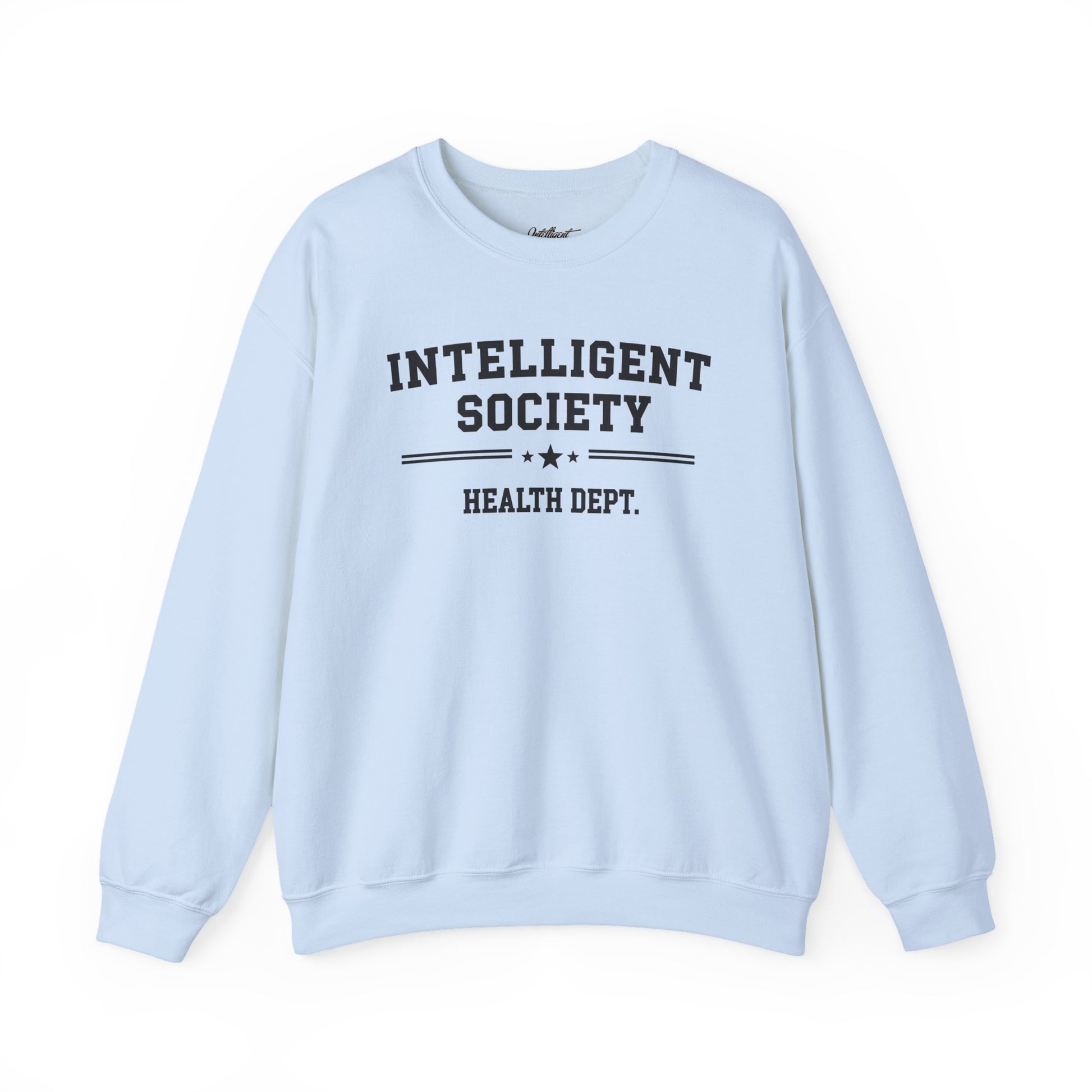 The Intelligent Society Health Dept. crewneck blends classic varsity energy with modern purpose. Designed for thinkers, movers, and doers who care about more than just fitness — they care about balance.