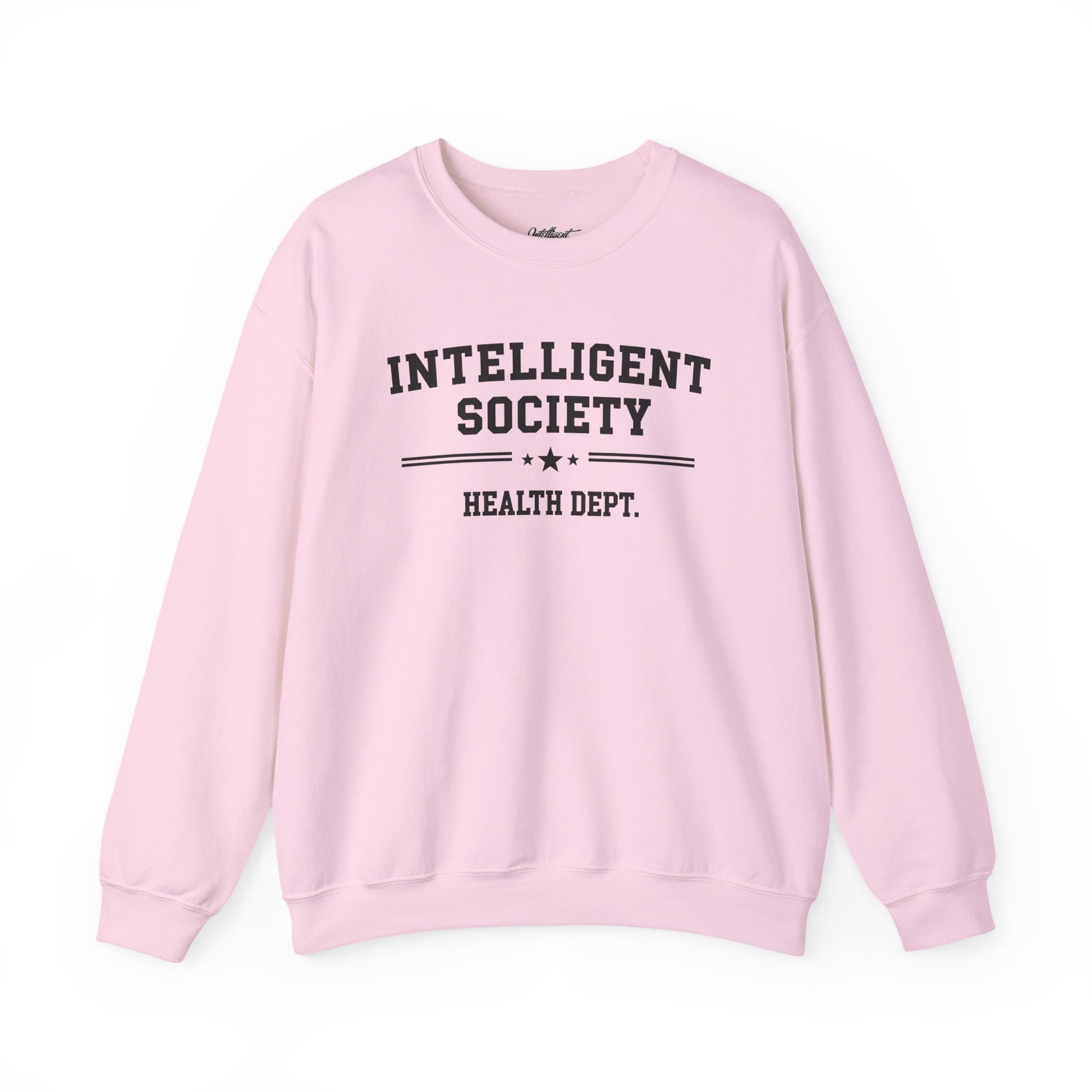 The Intelligent Society Health Dept. crewneck blends classic varsity energy with modern purpose. Designed for thinkers, movers, and doers who care about more than just fitness — they care about balance.